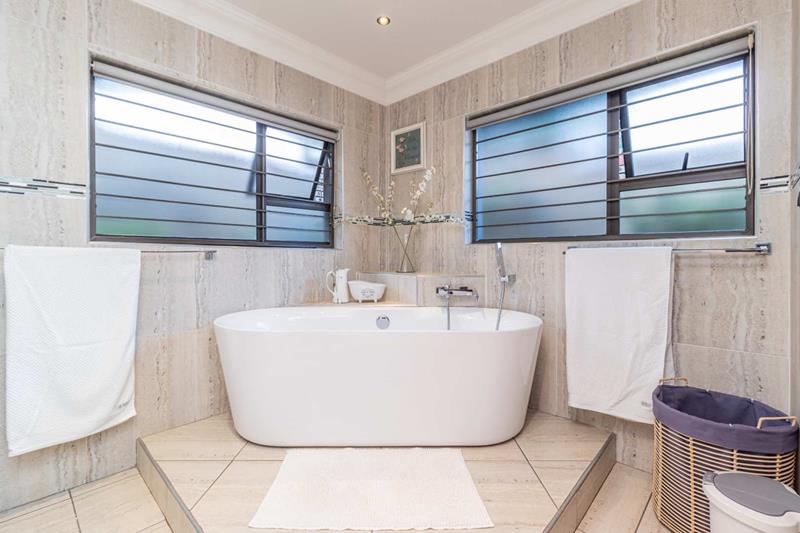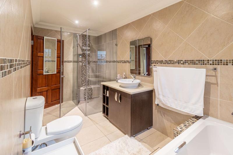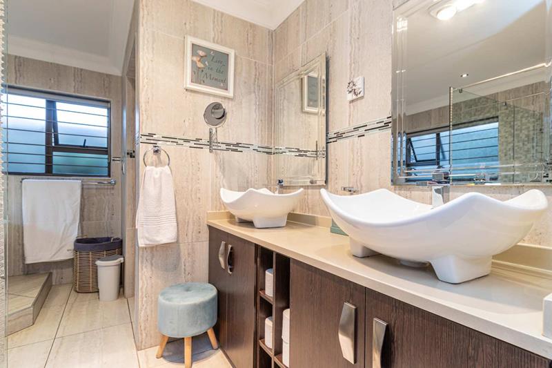 Exquisite 4edroom home with 4 en-suite bathrooms. This home is for a family that loves to entertain with a heated pool Open plan ultra modern kitchen with a separate sculleryand walk-in pantry.
