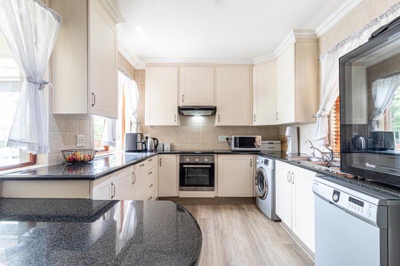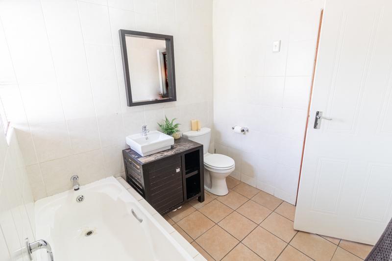 This beautiful home offers an upmarket kitchen, dining room, and Tv room flowing onto the undercover patio. From the undercover patio, a deck for more entertainment space looking out on the Immaculate garden and swimming pool.